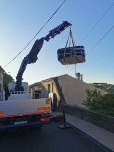 Lorsque l’accès est impossible par voie terrestre (terrasse en hauteur, maison enclavée, jardin inaccessible), nous pouvons organiser une livraison avec un camion grue.